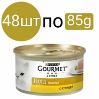 Влажный корм Gourmet Gold, для кошек, паштет со вкусом курицы (48шт по 85г)