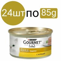 Влажный корм Gourmet Gold, для кошек, паштет со вкусом курицы (24шт по 85г)
