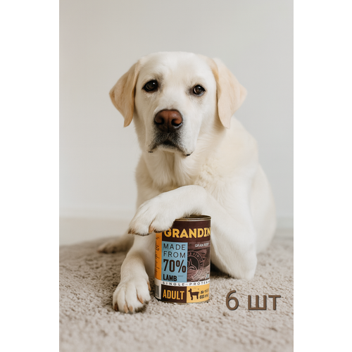 GRANDIN полноценный консервированный корм для собак из свежего мяса ягнёнка составит отличную основу повседневного рациона питомца.