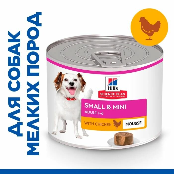 Влажный корм Hill’s Science Plan Small&Mini для взрослых собак мелких пород, мусс с курицей, (6шт по 200г): сравнение цен, характеристики, фото, актуальное наличие и цены.