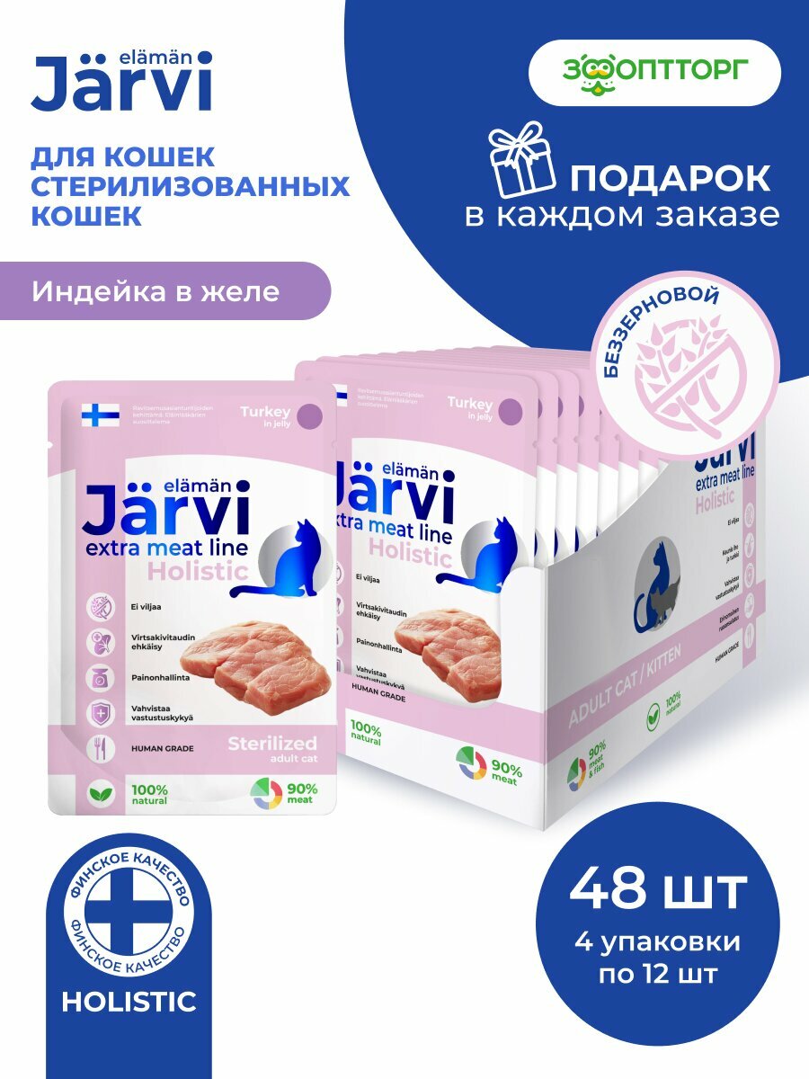 Влажный корм Jarvi Extra meat line для стерилизованных кошек (кусочки в желе) Индейка, 85 г х 48 шт.: сравнение цен, характеристики, фото, актуальное наличие и цены.