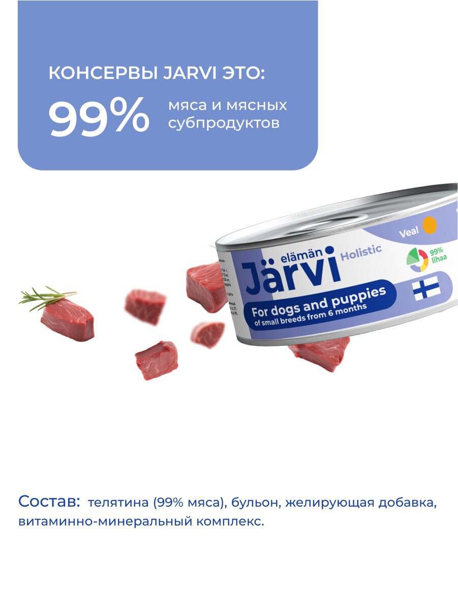 Влажный корм Jarvi консервы для щенков и собак мелких пород, Телятина 100 г х 7 шт.: сравнение цен, характеристики, фото, актуальное наличие и цены.