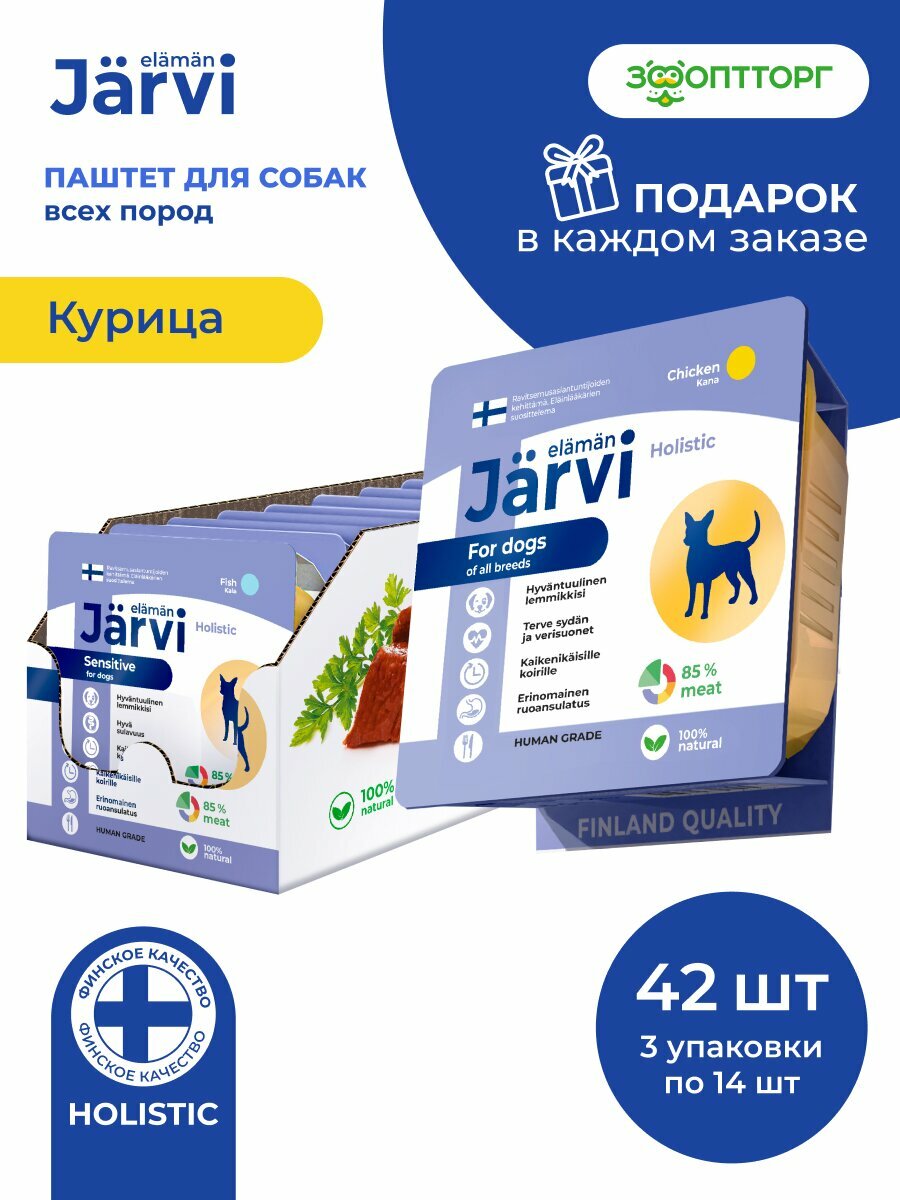 Влажный корм Jarvi мясной паштет для собак всех пород с курицей, 100 г х 42 шт.: сравнение цен, характеристики, фото, актуальное наличие и цены.