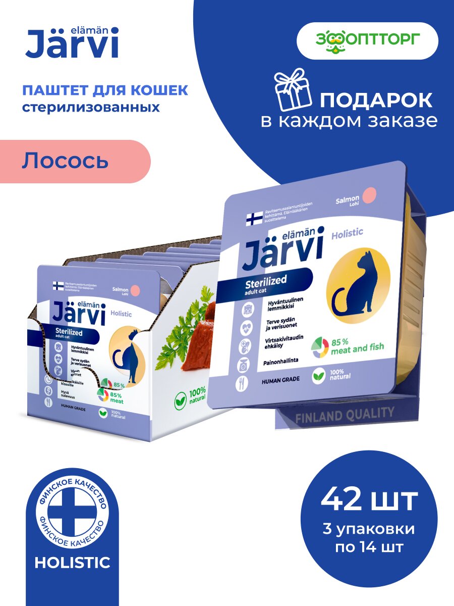 Влажный корм Jarvi мясной паштет для стерилизованных кошек с лососем 100 г х 42 шт.: сравнение цен, характеристики, фото, актуальное наличие и цены.