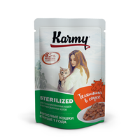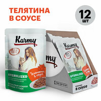 Влажный корм Karmy STERILIZED Телятина в соусе для стерилизованных кошек и кастрированных котов старше 1 года 12х80г.: сравнение цен, характеристики, фото, актуальное наличие и цены.