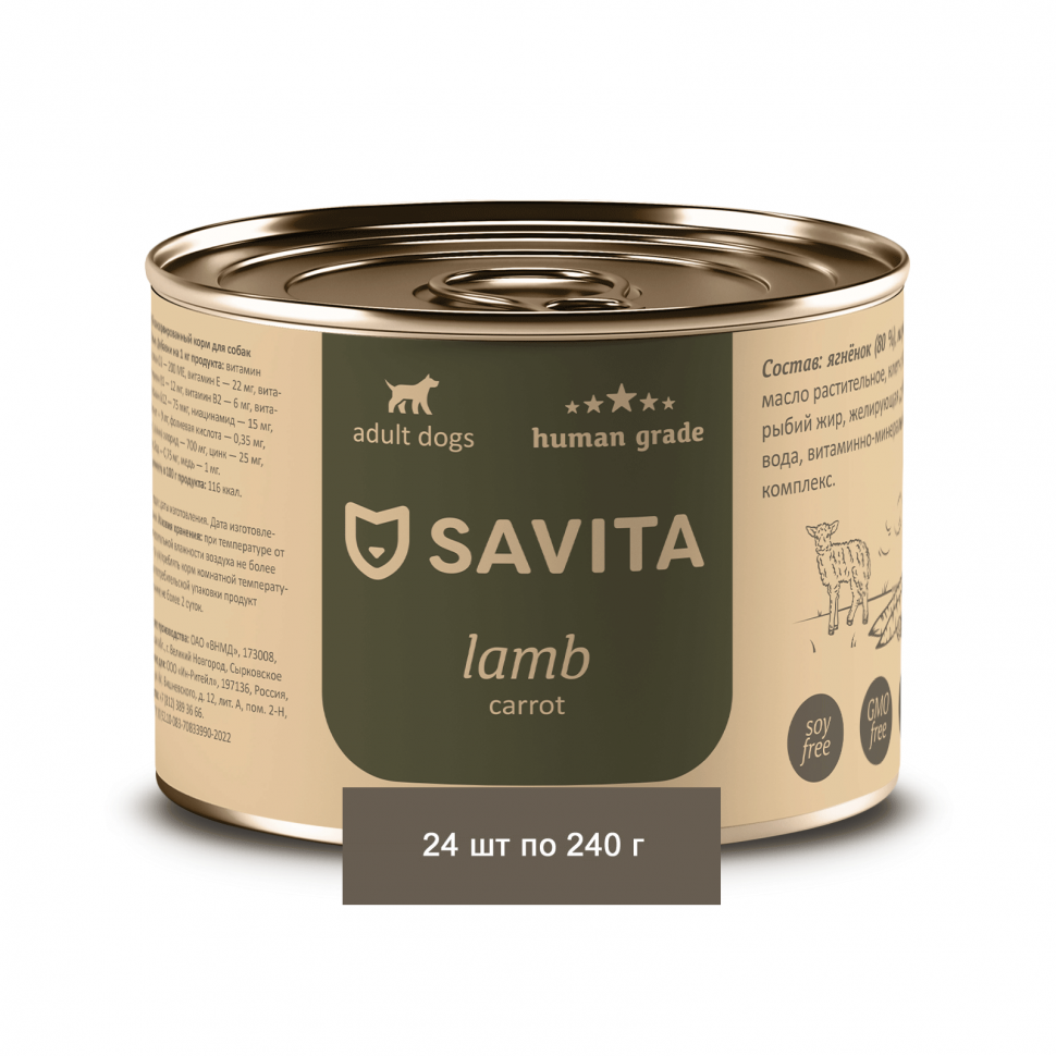 SAVITA консервы для собак «Ягнёнок с морковью». Влажный корм, 24шт по 240гр: сравнение цен, характеристики, фото, актуальное наличие и цены.