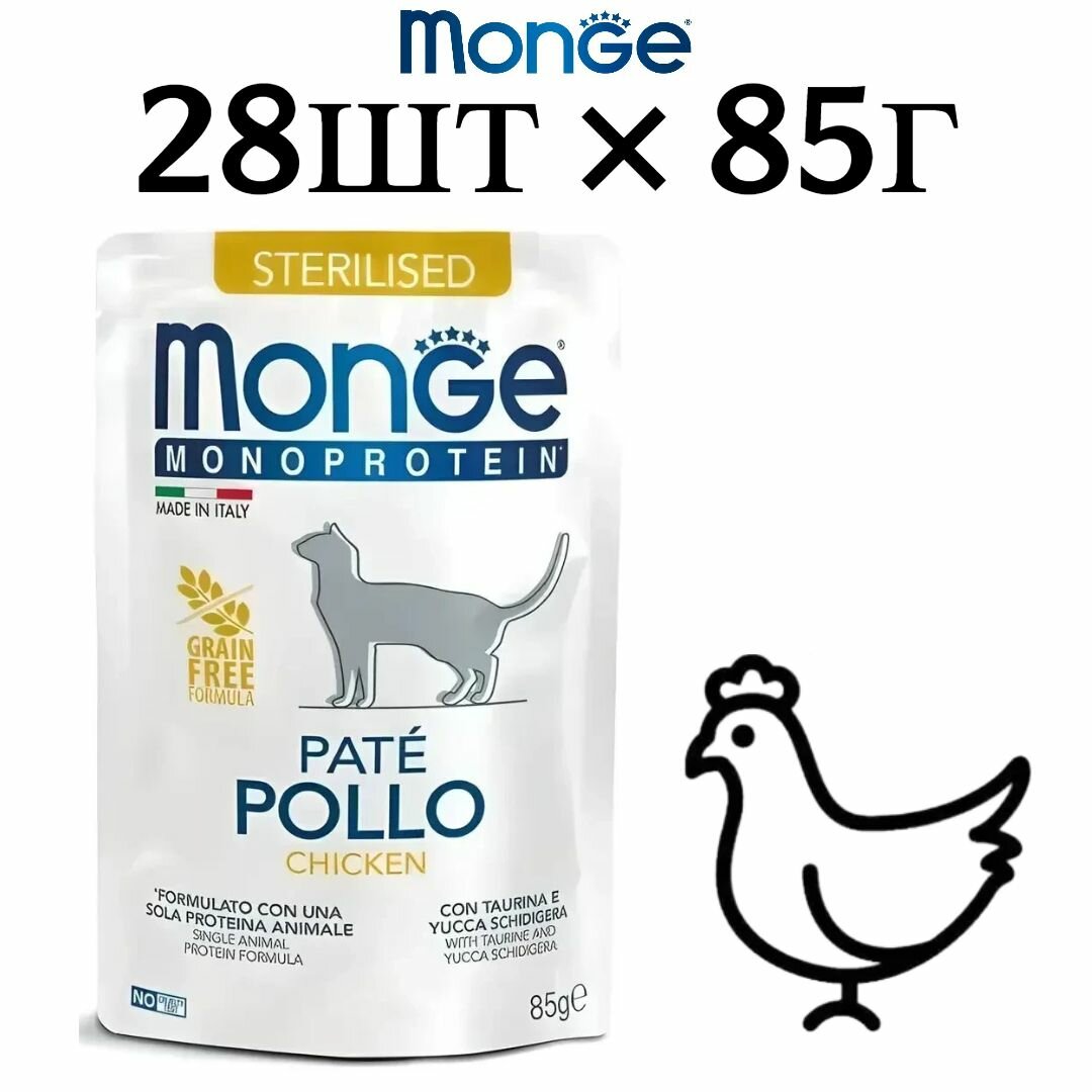 Купить Влажный корм Monge Cat Monoprotein пауч, для стерилизованных кошек, со вкусом курицы (28шт по 85г) с доставкой по всей России. Влажный корм Monge Cat Monoprotein пауч, для стерилизованных кошек, со вкусом курицы (28шт по 85г): сравнение цен, характеристики, фото, актуальное наличие и цены.