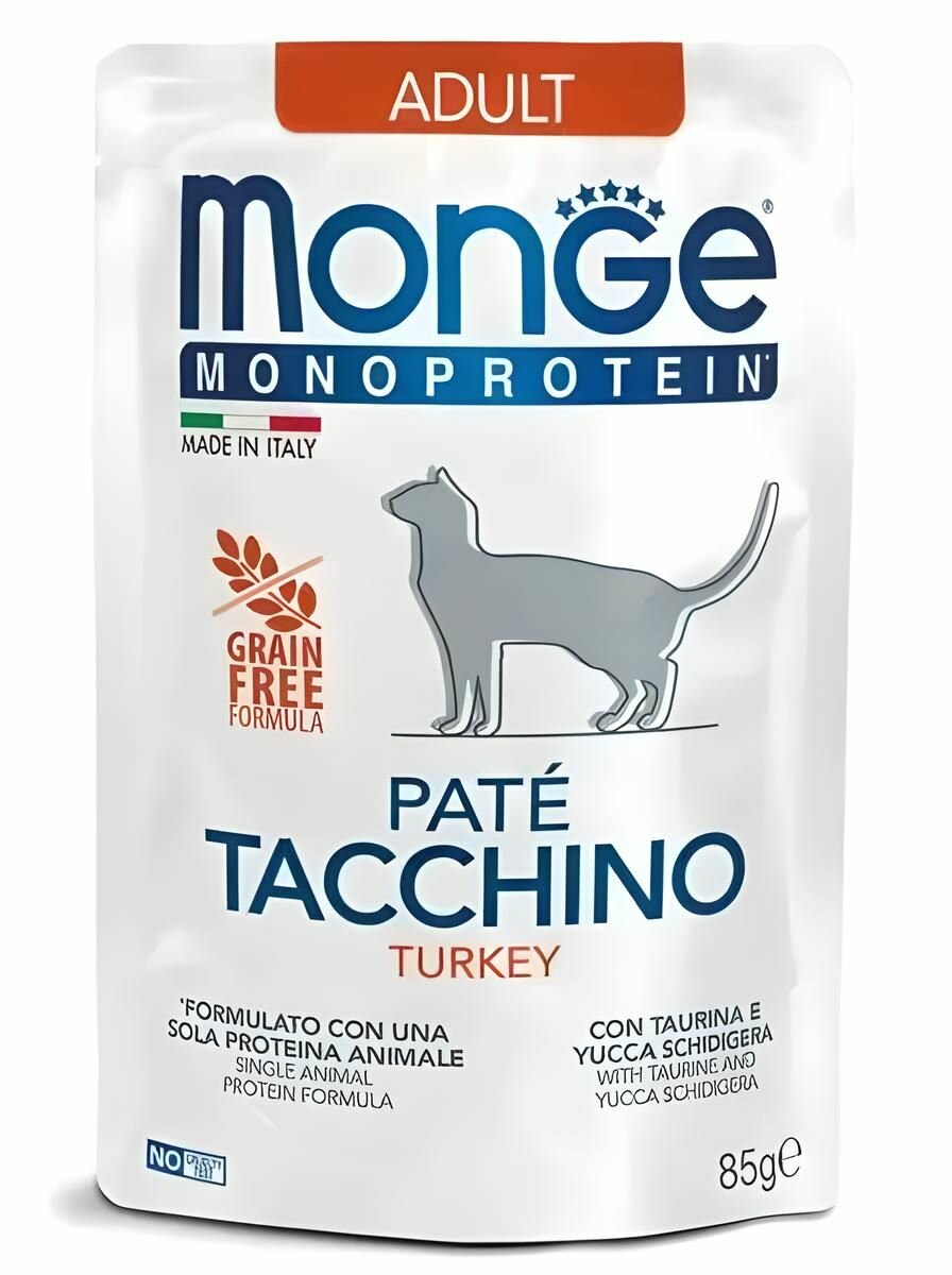 Влажный корм Monge Cat Monoprotein пауч, для взрослых кошек, со вкусом индейки (6шт по 85г): сравнение цен, характеристики, фото, актуальное наличие и цены.