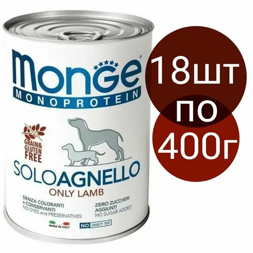 Купить Влажный корм Monge Dog Monoprotein Solo Lamb, для взрослых собак, со вкусом ягнёнка (18шт по 400г) с доставкой по всей России. Влажный корм Monge Dog Monoprotein Solo Lamb, для взрослых собак, со вкусом ягнёнка (18шт по 400г): сравнение цен, характеристики, фото, актуальное наличие и цены.