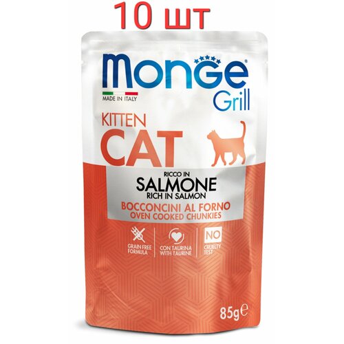 Купить Влажный корм Monge Grill Cat Salmone Kitten, для котят беззерновой, с лососем в желе, 10 шт. х 85 г с доставкой по всей России. Влажный корм Monge Grill Cat Salmone Kitten, для котят беззерновой, с лососем в желе, 10 шт. х 85 г: сравнение цен, характеристики, фото, актуальное наличие и цены.