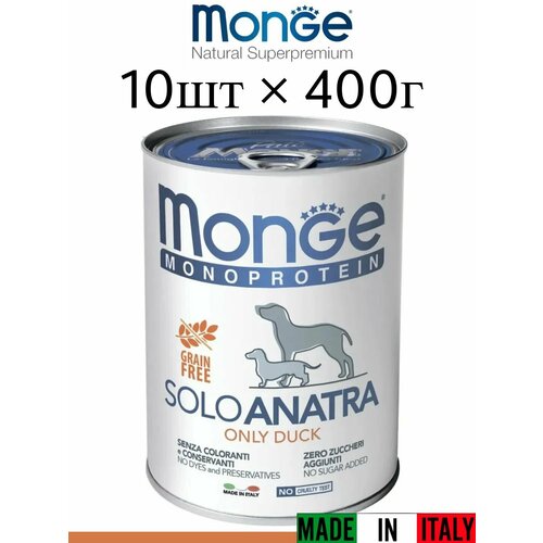 Купить Влажный корм Monge Monoprotein Solo Anatra , беззерновой для собак , со вкусом утки (10шт по 400г) с доставкой по всей России. Влажный корм Monge Monoprotein Solo Anatra , беззерновой для собак , со вкусом утки (10шт по 400г): сравнение цен, характеристики, фото, актуальное наличие и цены.