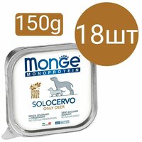 Влажный корм Monge Monoprotein SoloCervo Dog, для собак, паштет со вкусом оленины (18шт по 150г): сравнение цен, характеристики, фото, актуальное наличие и цены.