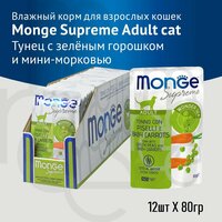 Купить Влажный корм Monge Supreme Adult cat для взрослых кошек с зелёным горошком и мини-морковью 80 г х 12шт с доставкой по всей России.