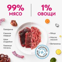 SUPERPET из говядины содержит высококачественные ингредиенты, включая 93% говядины, свиного сердца, шеи индейки, 5% говяжьей печени, которые являются источником белка и аминокислот. Он также богат витаминами и минералами, такими как Омега-3 жирные кислоты, витамины группы В, витамин А, витамин Е, кальций, фосфор, магний и другие микроэлементы. Эти питательные вещества помогают поддерживать нормальную работу всех систем органов, укрепляют опорно-двигательный аппарат и кровеносные сосуды, а также нормализуют обменные процессы.