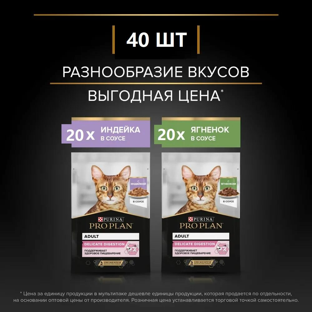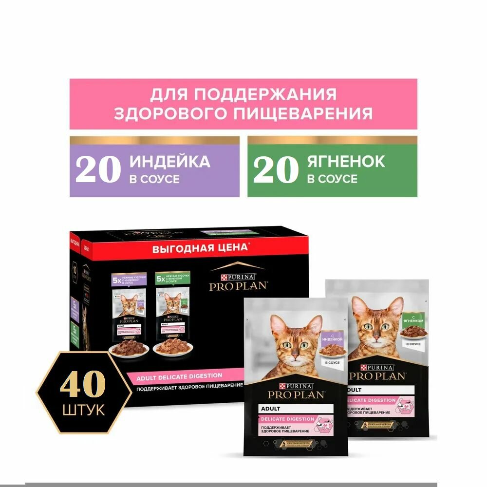 Купить Влажный корм PRO PLAN DELICATE DIGESTION для кошек для чувствительного пищеварения с индейкой в соусе, с ягненком в соусе 85 г х 40 шт с доставкой по всей России. Влажный корм PRO PLAN DELICATE DIGESTION для кошек для чувствительного пищеварения с индейкой в соусе, с ягненком в соусе 85 г х 40 шт: сравнение цен, характеристики, фото, актуальное наличие и цены.