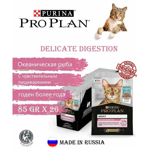 Купить Влажный корм PRO PLAN DELICATE DIGESTION для взрослых кошек для чувствительного пищеварения, с океанической рыбой в соусе, 85г x 26 шт с доставкой по всей России. Влажный корм PRO PLAN DELICATE DIGESTION для взрослых кошек для чувствительного пищеварения, с океанической рыбой в соусе, 85г x 26 шт: сравнение цен, характеристики, фото, актуальное наличие и цены.