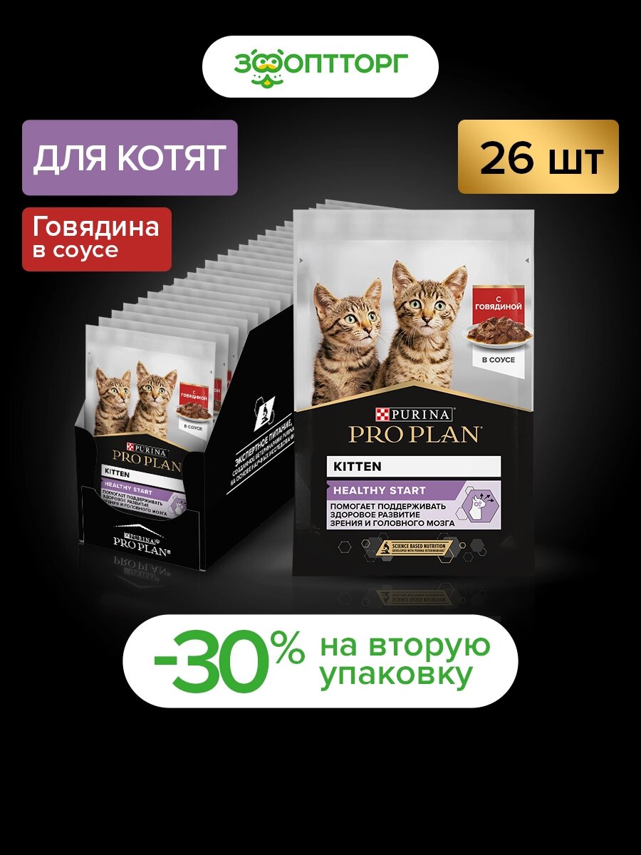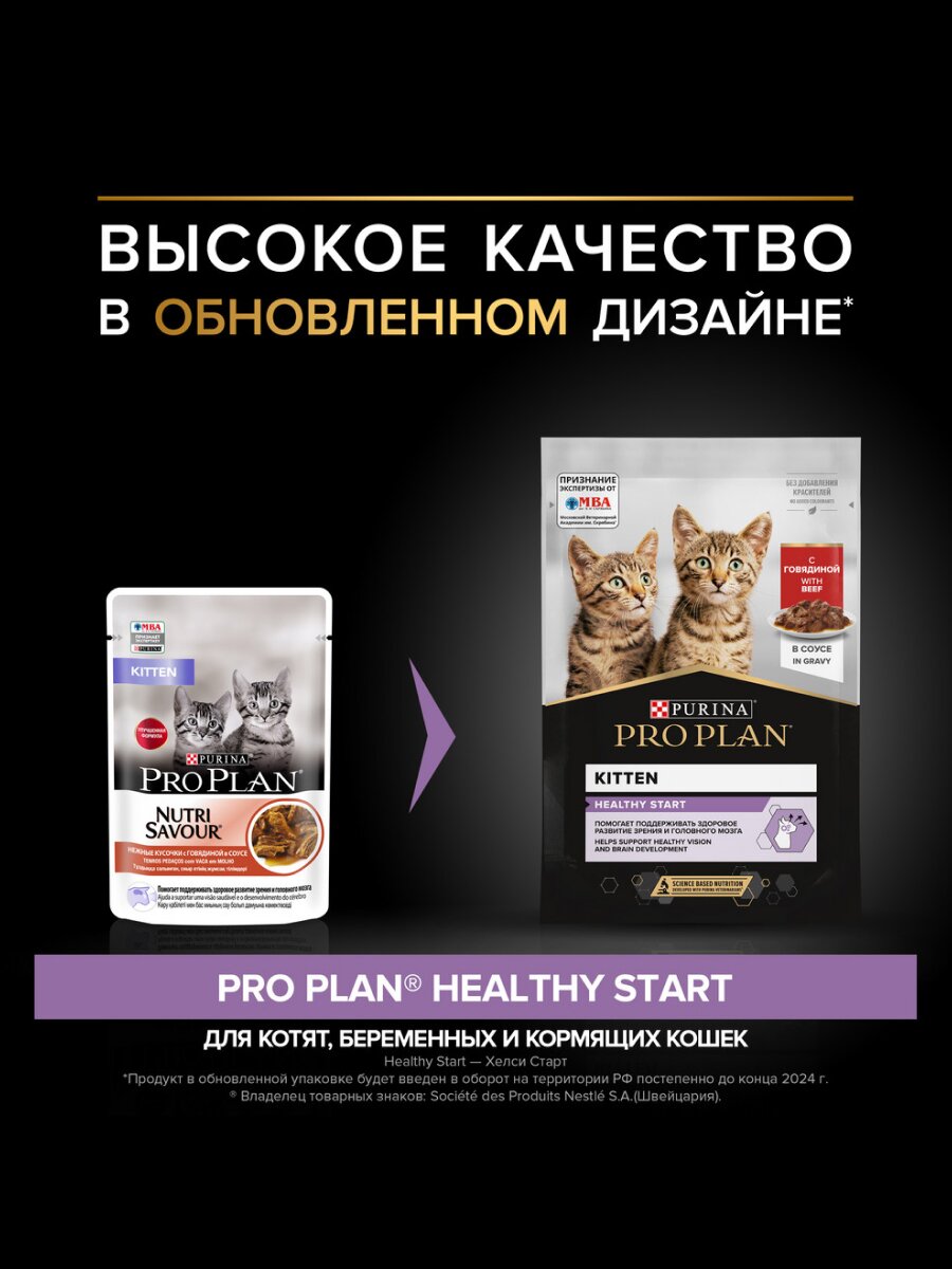 Влажный корм Pro Plan Nutrisavour Kitten пауч для котят (кусочки в соусе) Говядина, 85 г х 52 шт.: сравнение цен, характеристики, фото, актуальное наличие и цены.