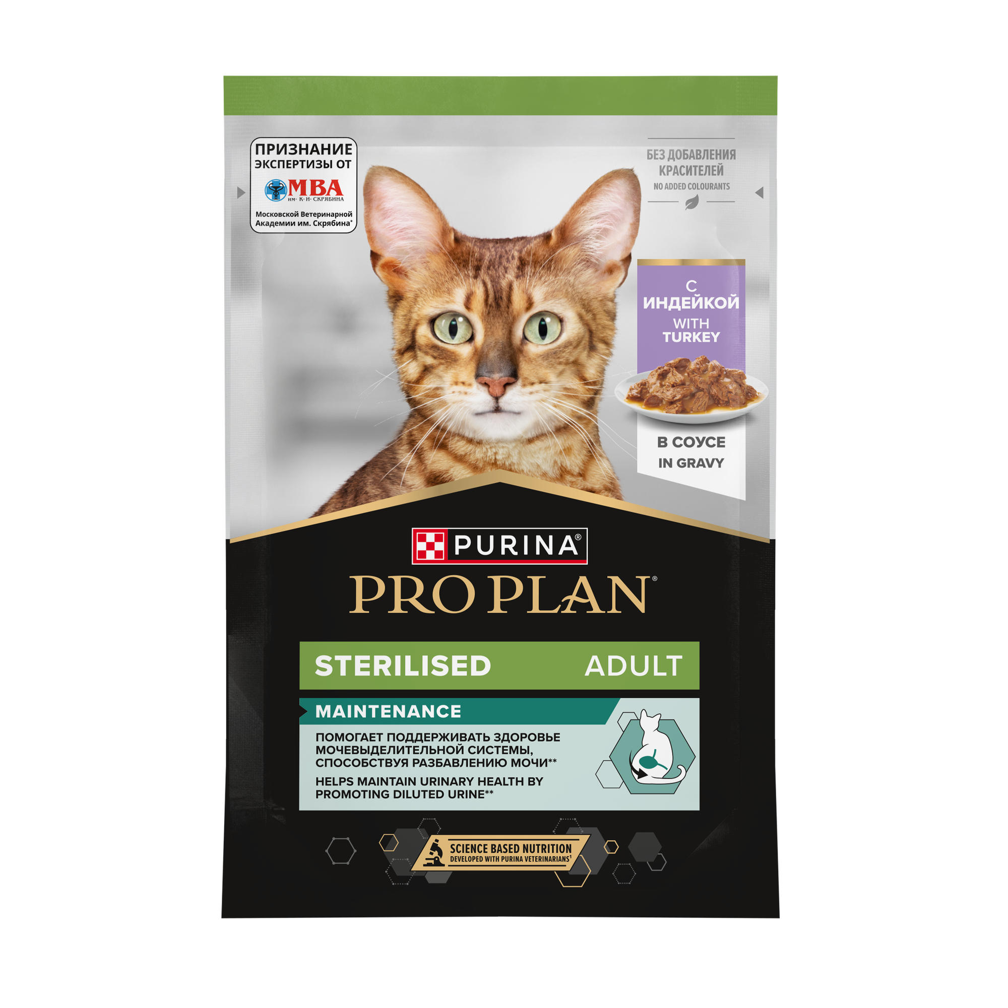 Влажный корм PRO PLAN® Sterilised MAINTENANCE для взрослых стерилизованных кошек, с индейкой в соусе, 85 г x 26 шт: сравнение цен, характеристики, фото, актуальное наличие и цены.