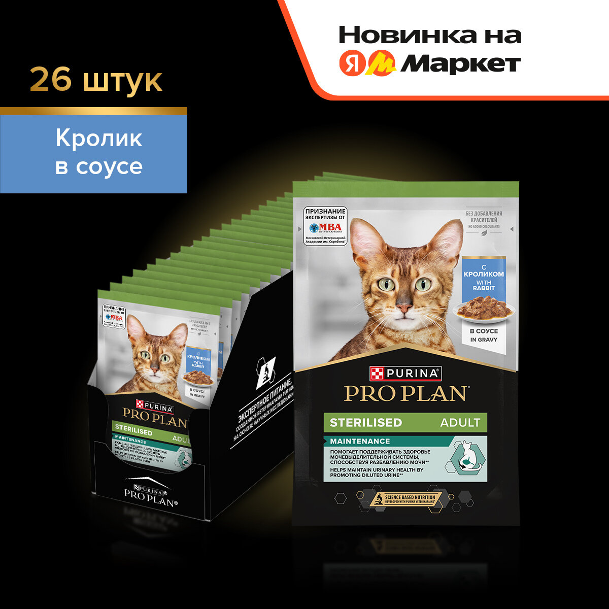 Влажный корм PRO PLAN® Sterilised MAINTENANCE для взрослых стерилизованных кошек, с кроликом в соусе, 85 г x 26 шт: сравнение цен, характеристики, фото, актуальное наличие и цены.