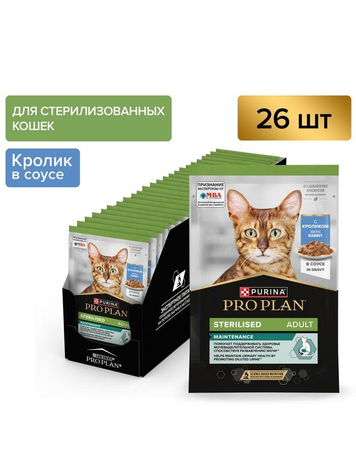 Купить PRO PLAN пауч влажный корм для взрослых стерилизованных кошек и кастрированных котов, с кроликом в соусе 26х85г с доставкой по всей России. PRO PLAN пауч влажный корм для взрослых стерилизованных кошек и кастрированных котов, с кроликом в соусе 26х85г: сравнение цен, характеристики, фото, актуальное наличие и цены.