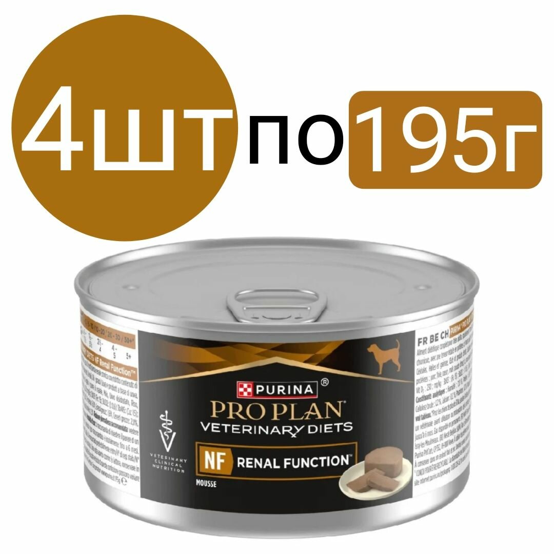 Купить Влажный корм Purina Pro Plan Veterinary Diets NF Renal Function для собак (4шт по 195г) с доставкой по всей России. Влажный корм Purina Pro Plan Veterinary Diets NF Renal Function для собак (4шт по 195г): сравнение цен, характеристики, фото, актуальное наличие и цены.