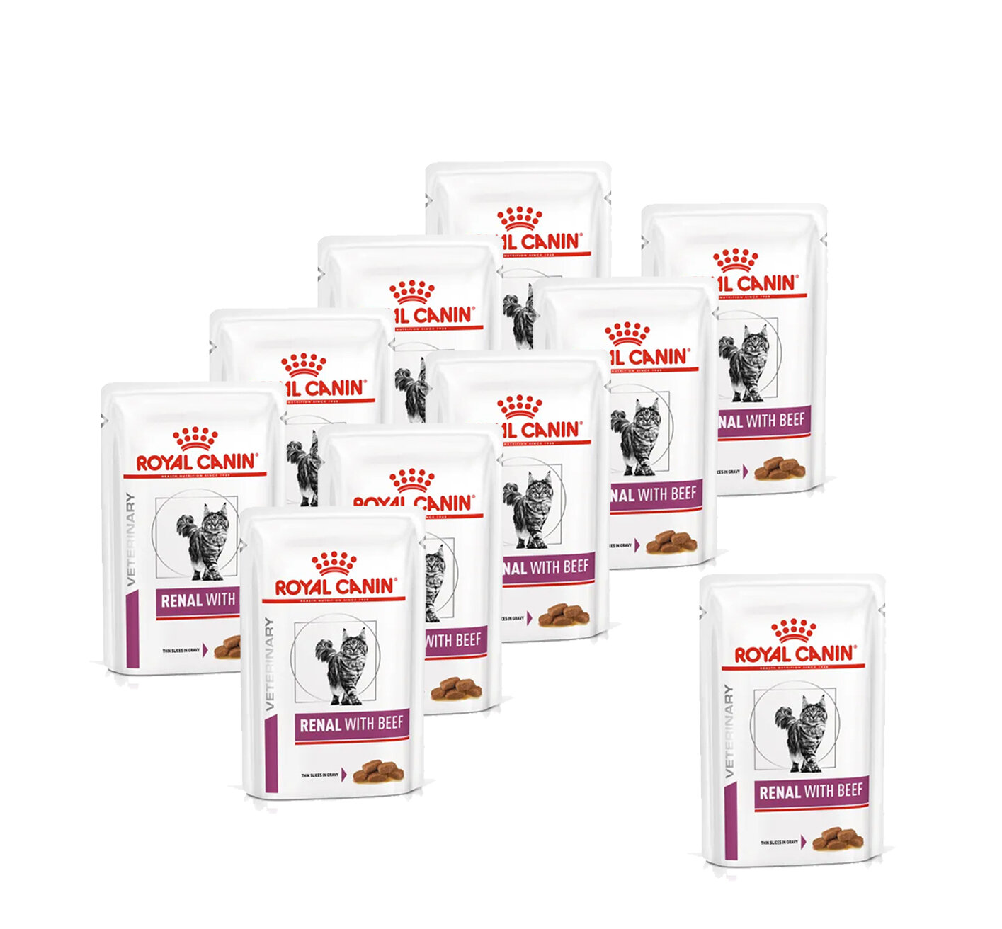 Royal Canin Renal With Beef влажный корм для взрослых кошек для поддержания функции почек с говядиной, кусочки в соусе, в паучах — 85 г x 10 шт.: сравнение цен, характеристики, фото, актуальное наличие и цены.