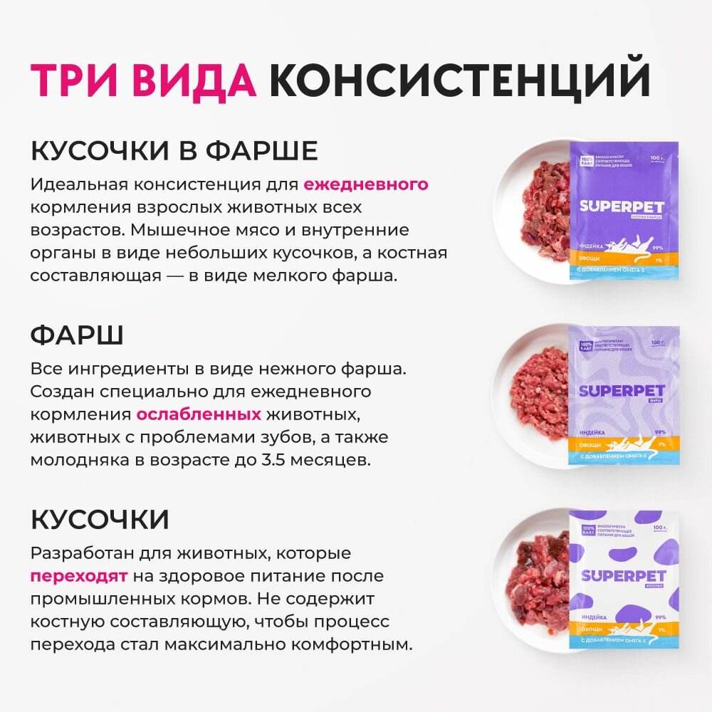 Влажный корм SUPERPET для кошек, замороженный, индейка, фарш, 100г * 15 шт: сравнение цен, характеристики, фото, актуальное наличие и цены.