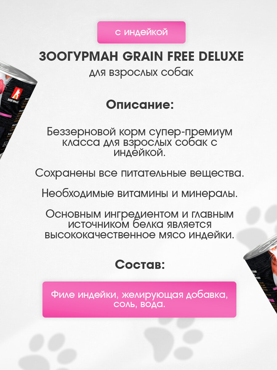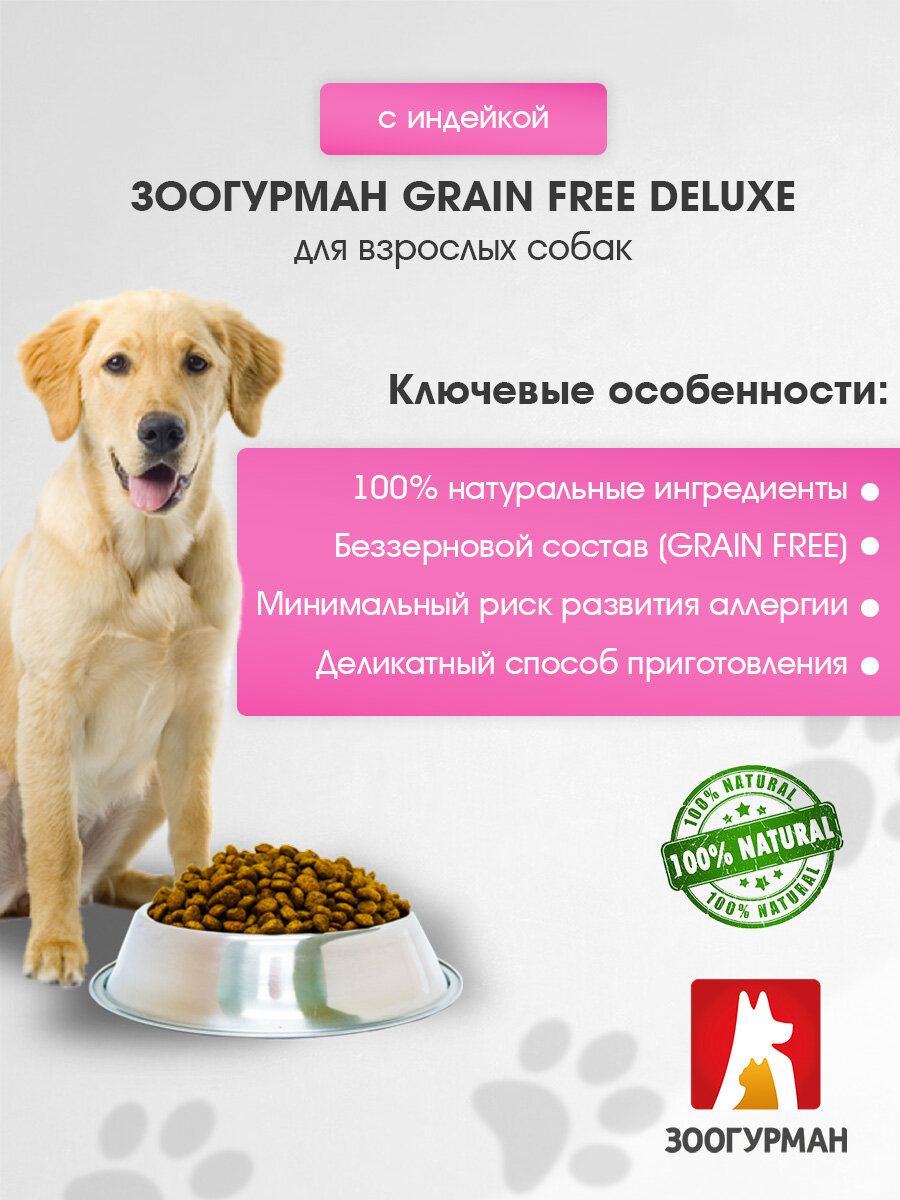 Влажный корм Зоогурман Grain Free Deluxe беззерновые для взрослых собак с индейкой банка, 350 г 6 шт: сравнение цен, характеристики, фото, актуальное наличие и цены.