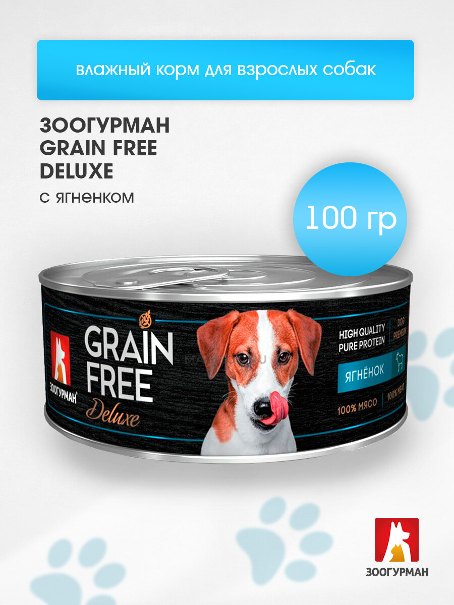 Влажный корм Зоогурман Grain Free Deluxe беззерновые для взрослых собак с ягненком банка, 100 г 6 шт: сравнение цен, характеристики, фото, актуальное наличие и цены.