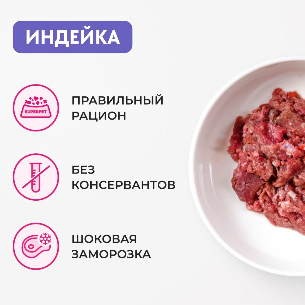 Купить Влажный натуральный корм для собак, замороженный, индейка, 100г * 30 шт, кусочки в фарше с доставкой по всей России.