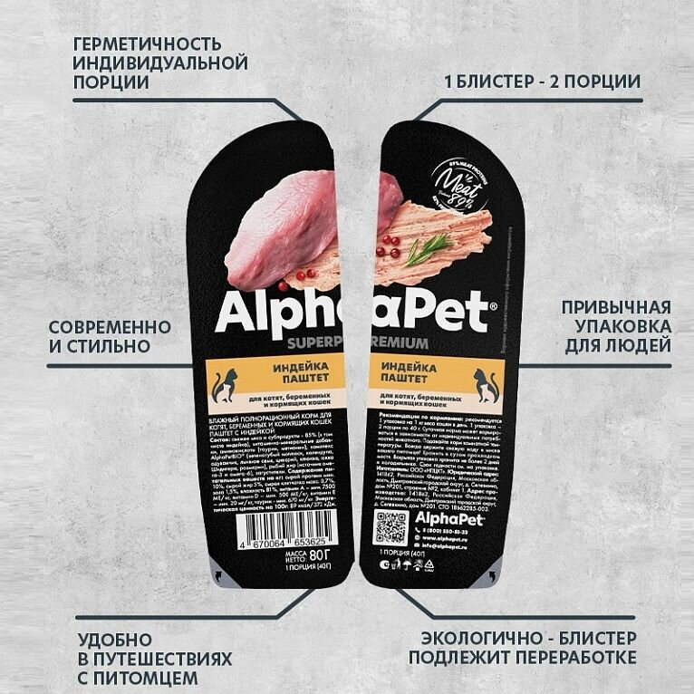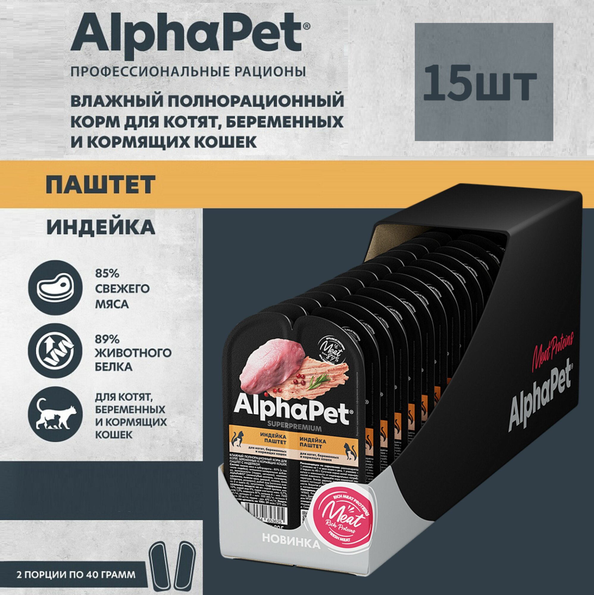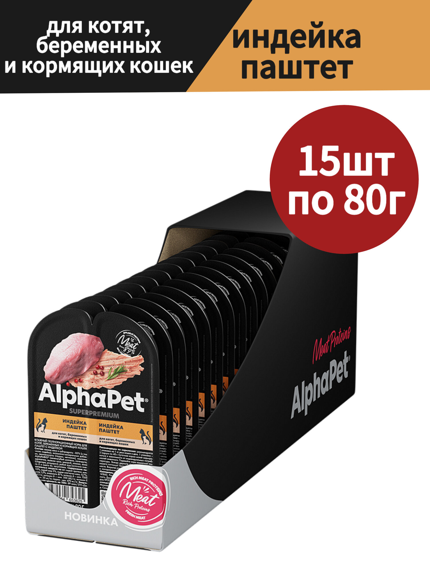 ALPHAPET SUPERPREMIUM 15 шт по 80 г влажный, полнорационный корм для котят, беременных и кормящих кошек, паштет с индейкой: сравнение цен, характеристики, фото, актуальное наличие и цены.