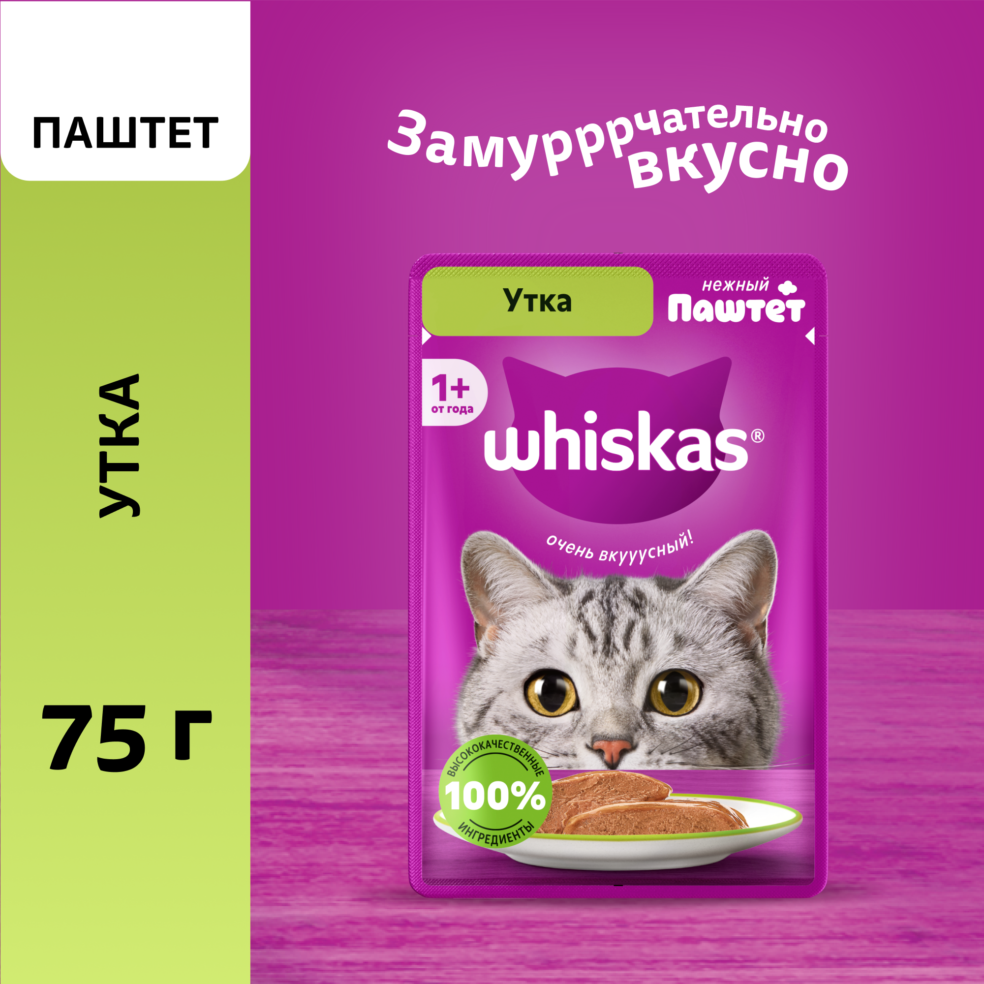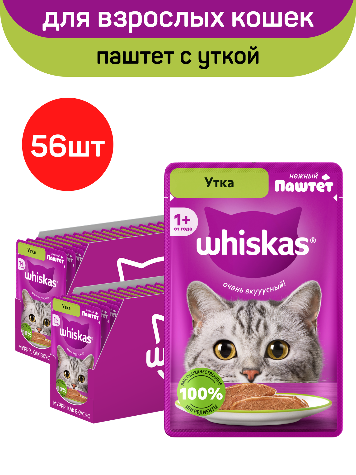 Купить Влажный полнорационный корм WHISKAS для взрослых кошек, паштет с уткой, 56 шт по 75 г с доставкой по всей России. Влажный полнорационный корм WHISKAS для взрослых кошек, паштет с уткой, 56 шт по 75 г: сравнение цен, характеристики, фото, актуальное наличие и цены.