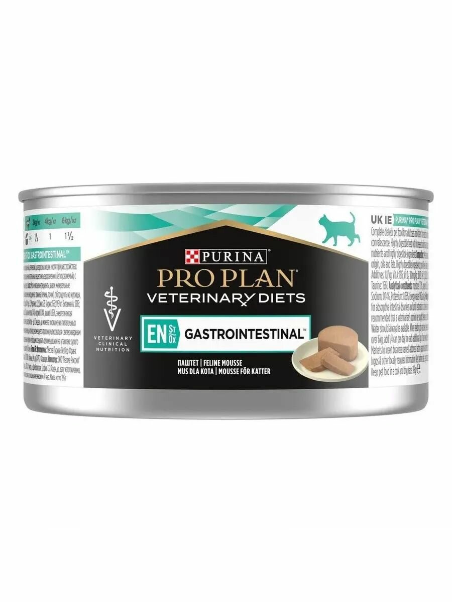 Влажный ветеринарный корм Purina PRO PLAN Veterinary Diets Gastrointestinal EN предназначен для кошек, страдающих от расстройств пищеварения. Этот корм разработан с учетом специфических потребностей животных с проблемами желудочно-кишечного тракта и может быть рекомендован ветеринаром.
