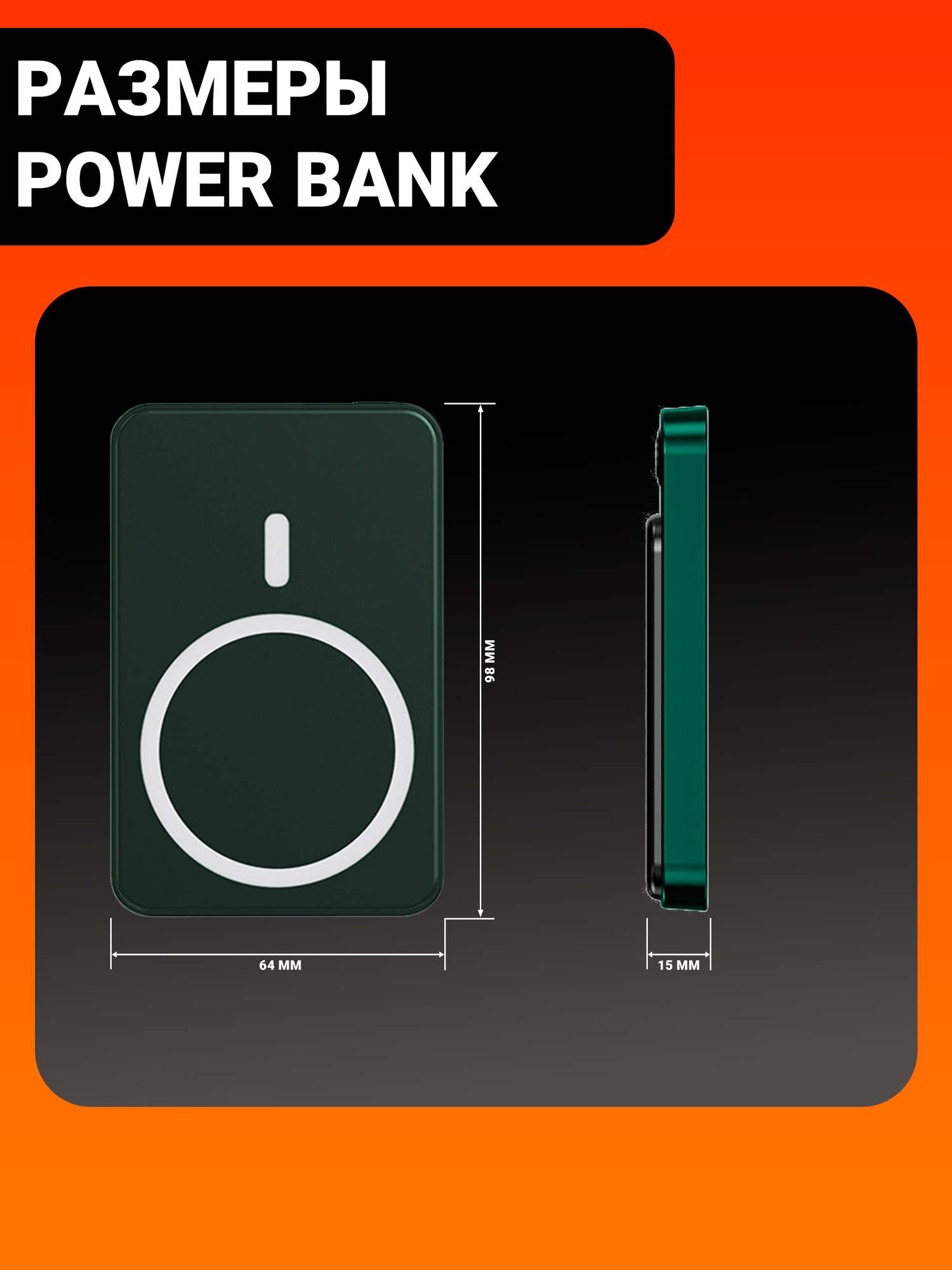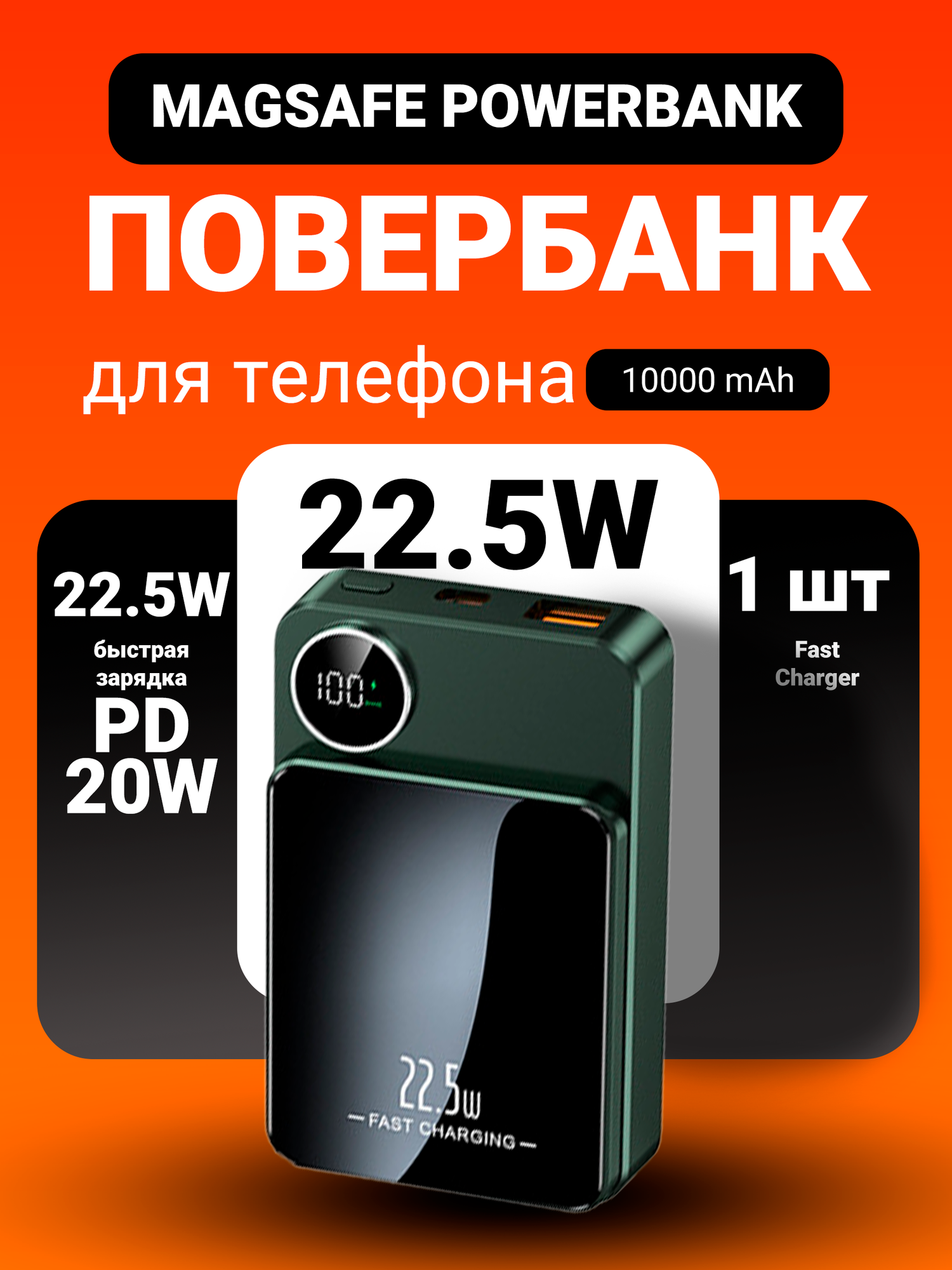 Внешний АКБ Магсейф для Apple iPhone 10000mAh, USB, Type-C, PD20W, Зеленый: сравнение цен, характеристики, фото, актуальное наличие и цены.
