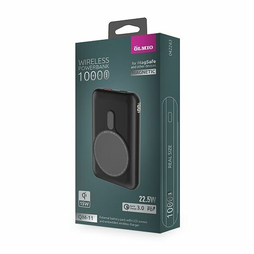 Внешний АКБ OLMIO QM-11, 10000mAh, 22,5W QuickCharge3.0/PowerDelivery, 15W wireless, midnight green: сравнение цен, характеристики, фото, актуальное наличие и цены.