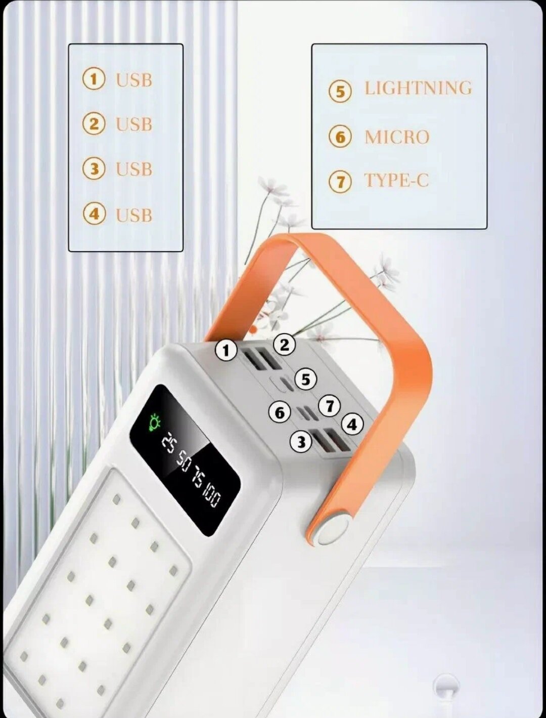 Внешний аккумулятор Power Bank 80000mAh, универсальный с мощным прожектором и фонариком для всех телефонов, 80000 мАч,