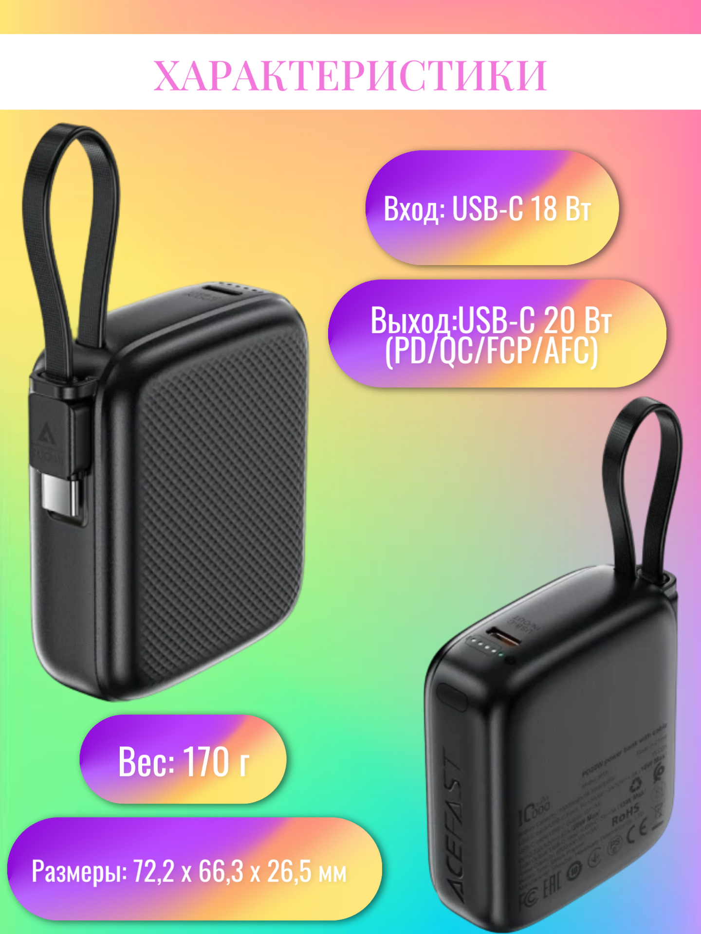 Купить Внешний аккумулятор Acefast M15 10000mAh, черный с доставкой по всей России. Внешний аккумулятор Acefast M15 10000mAh, черный: сравнение цен, характеристики, фото, актуальное наличие и цены.