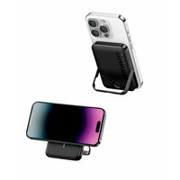Портативный акб Anker 1618 Magnetic Wireless Battery MagGo power bank 5000mAh Interstellar Gray черный для iPhone c Magsafe. Имеет универсальную встроенную складную подставку, которая удерживает ваш iPhone в вертикальном положении для удобного угла обзора. Сверхпрочный магнит надежно фиксирует, обеспечивая идеальное выравнивание и эффективную зарядку. Тонкий и компактность: Изящный дизайн имеет низкую толщину , поэтому вы можете в одиночку принимать звонки, делать селфи и многое другое. Новая технология Mini Cell от Anker уменьшает габариты всего аккумулятора без ущерба для мощности и эффективности зарядки.