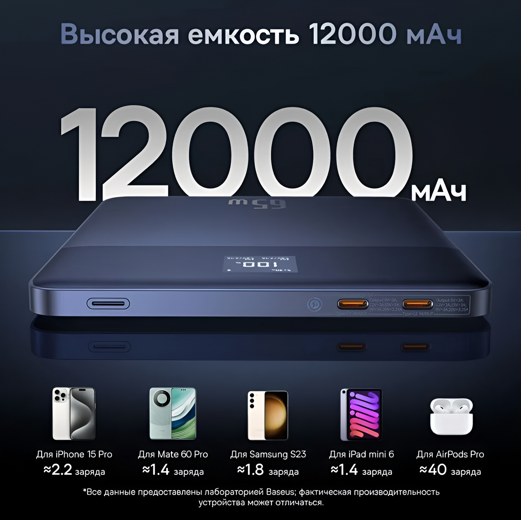 | Дополнительная информация | оснащен технологией быстрой зарядки мощностью 65 Вт, поддерживает быструю зарядку на входе и выходе с максимальной входной мощностью 60 Вт и максимальной выходной мощностью 65 Вт через порты Type-C |
