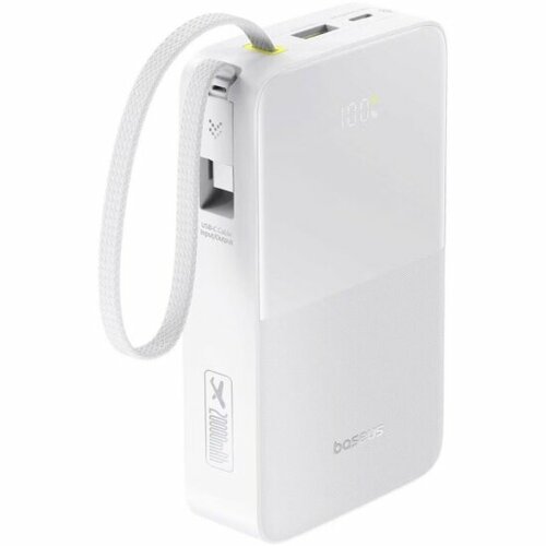 Аккумулятор поддерживает Power Delivery и Quick Charge 3.0 с максимальной мощностью до 22,5 Вт, обеспечивая эффективную зарядку современных гаджетов. Оснащён двумя портами USB-C и одним USB-A, а также встроенным кабелем USB-C, что избавляет от необходимости носить дополнительные провода.