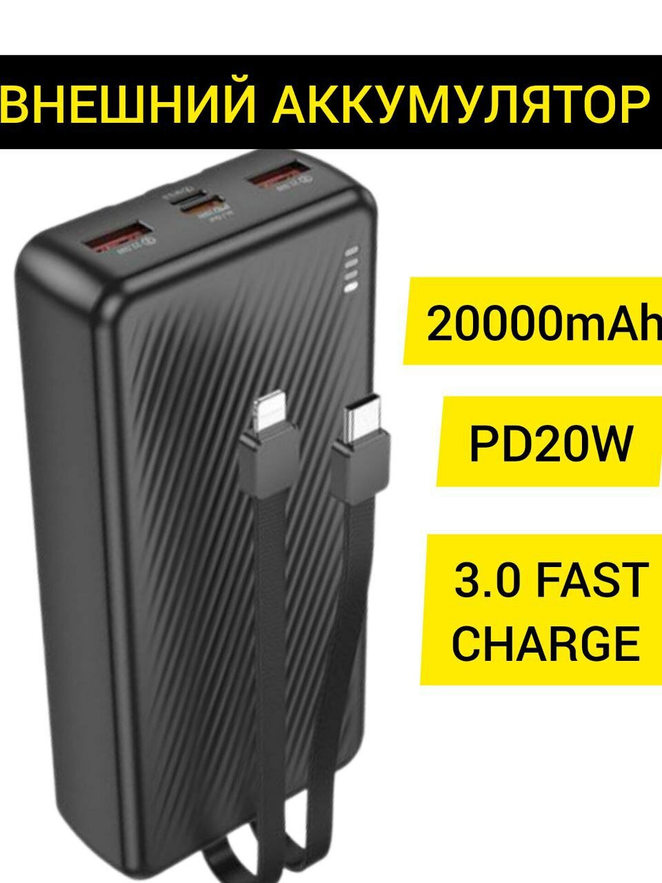 Купить Внешний аккумулятор быстрый повербанк 20000 mAh с проводами с доставкой по всей России. Внешний аккумулятор быстрый повербанк 20000 mAh с проводами: сравнение цен, характеристики, фото, актуальное наличие и цены.