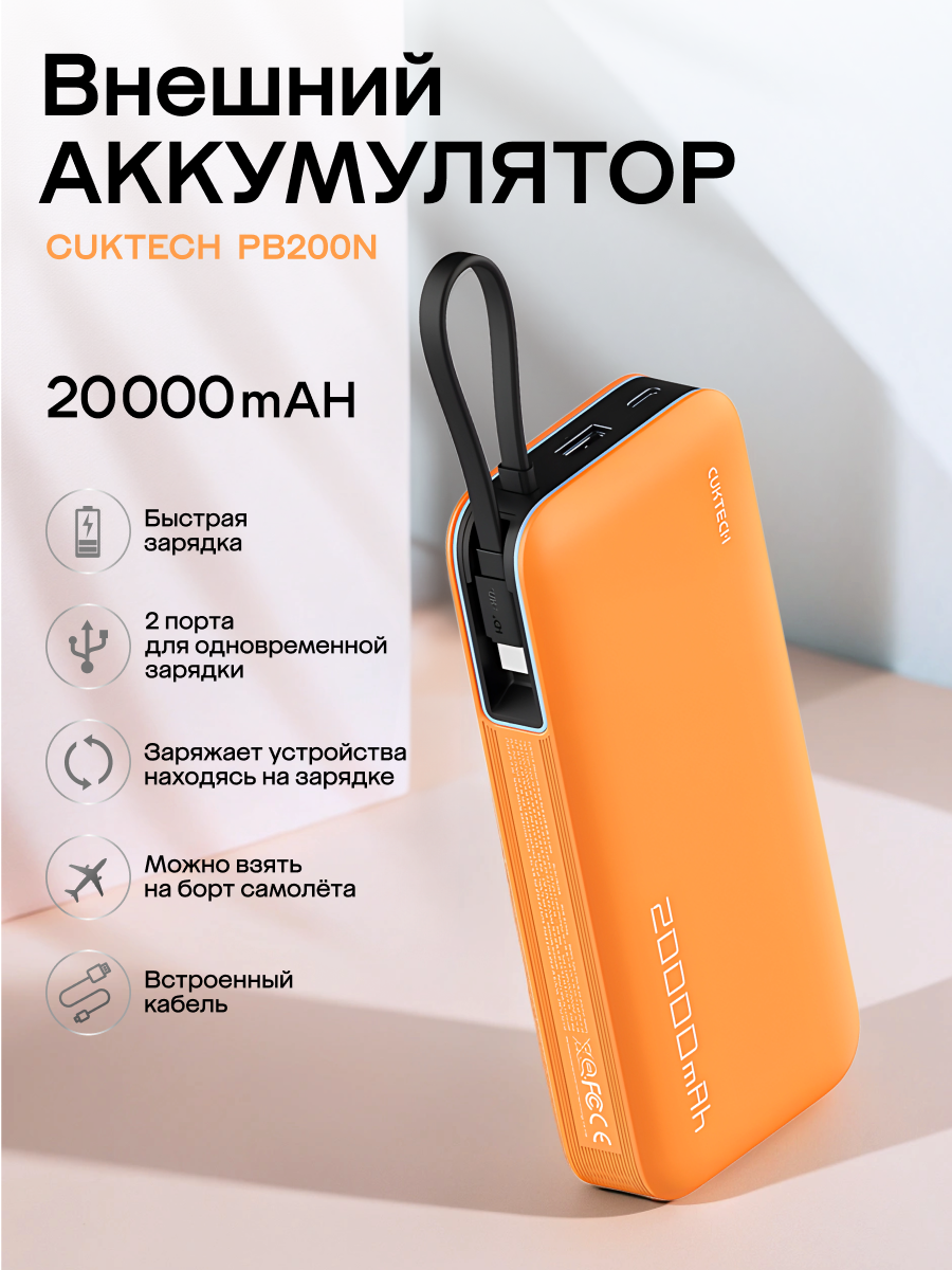 Купить Внешний аккумулятор CUKTECH 55W Power bank PB200N orange с доставкой по всей России. Внешний аккумулятор CUKTECH 55W Power bank PB200N orange: сравнение цен, характеристики, фото, актуальное наличие и цены.
