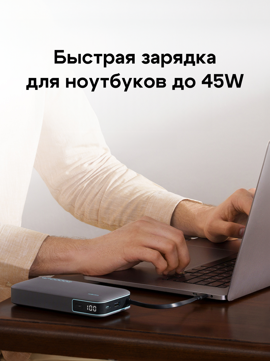 Стильный и мощный внешний аккумулятор CUKTECH PB200N станет вашим надёжным спутником в повседневной жизни. Благодаря ёмкости, достаточной для нескольких полных зарядок смартфона или другого устройства, вы можете быть уверены, что ваш гаджет не разрядится в самый неподходящий момент.