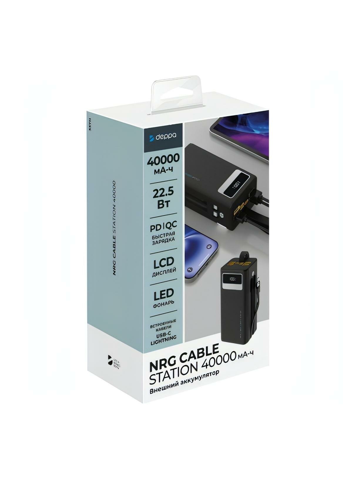 Внешний аккумулятор Deppa NRG Cable Station 40000 мА-ч 33711