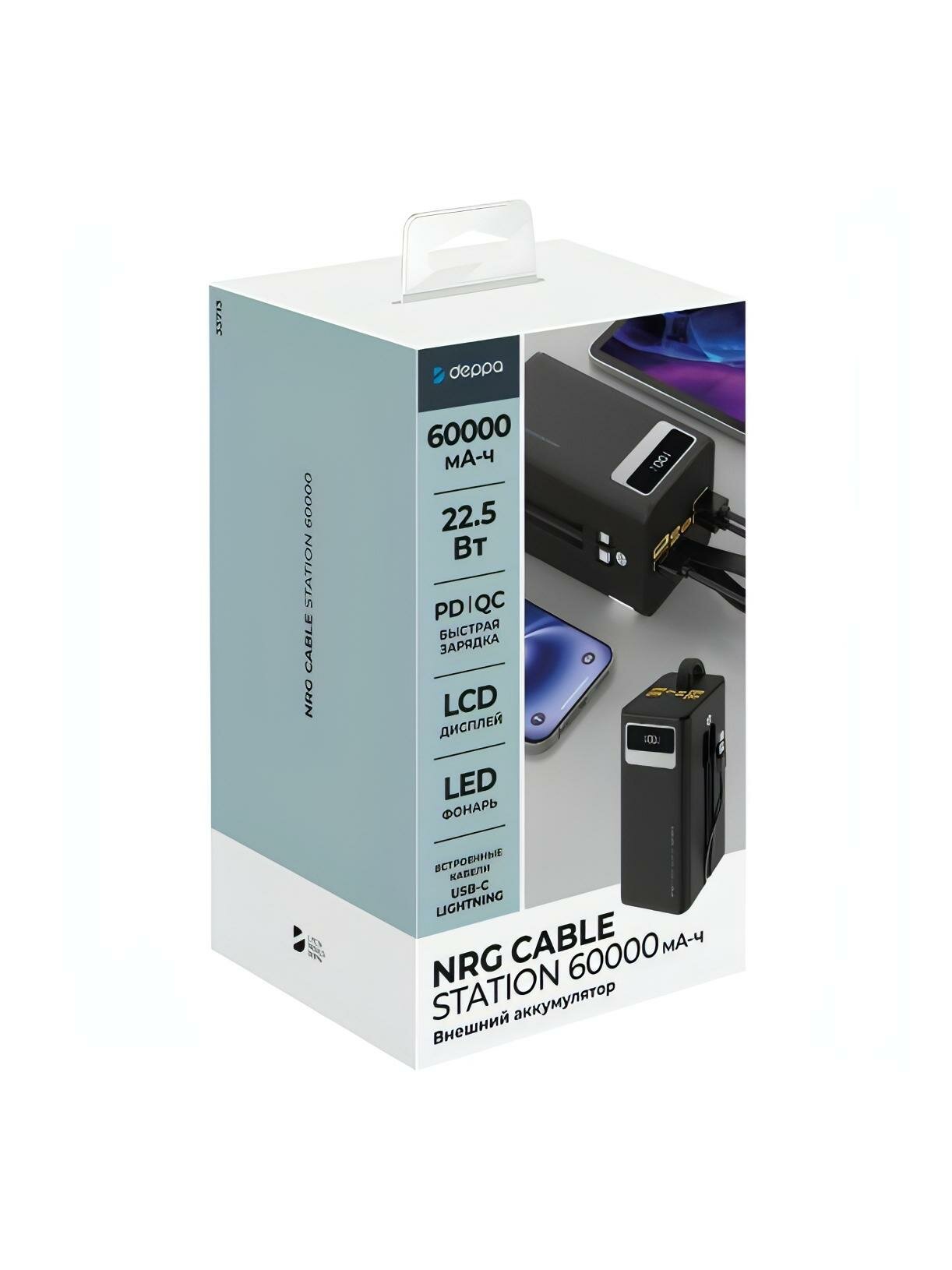 Внешний аккумулятор Deppa NRG Cable Station 60000 мА-ч, 33713