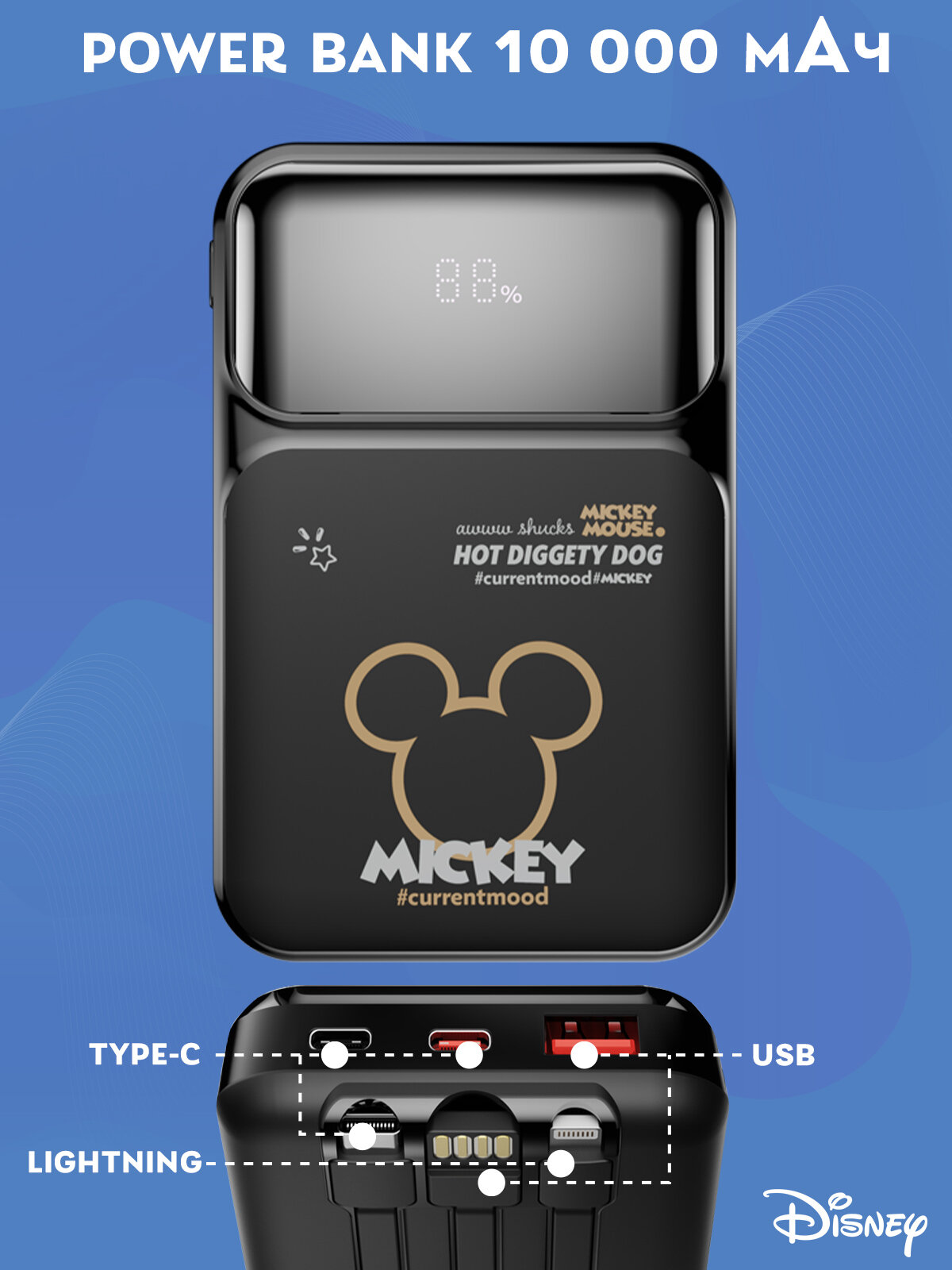 Внешний аккумулятор Дисней Микки Маус: Микки, 10000 мАч, быстрая зарядка, индикатор зарядки: сравнение цен, характеристики, фото, актуальное наличие и цены.