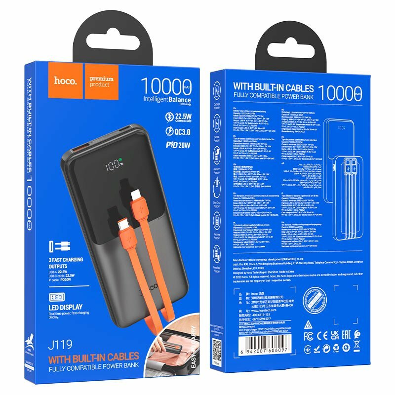 Внешний аккумулятор HOCO J119 Sharp charger 22.5W+PD20 fully compatible PB 10000 mAh (черный): сравнение цен, характеристики, фото, актуальное наличие и цены.