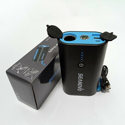 Внешний источник питания на 6000 мАч с Корейскими элементами питания на борту . Имеет на борту гнездо прикуривателя с выходом 12 вольт 15 ампер. Что позволяет подключить к нему насос, у которого есть разъём под прикуриватель. А также 2 гнезда (1 USB выход 5V-2A / 9V-2A и 1 Typе С вход для зарядки) и фонарик на один светодиод с 2 режимами (постоянно горит или мигает). Также имеет 4ступенчатый светодиодный индикатор заряда и разряда на верхней части корпуса (25%, 50%, 75%, 100%). При зарядке 5V-2A полная зпрядка 8 часов, при зарядке 9V - 2A полная харядка 4 часа. В комплек поставки входит устройство, инструкция по эксплуатации и кабель USB - Type-C. Размер устройства Д: 159 мм x Ш: 95 мм x В: 50 мм