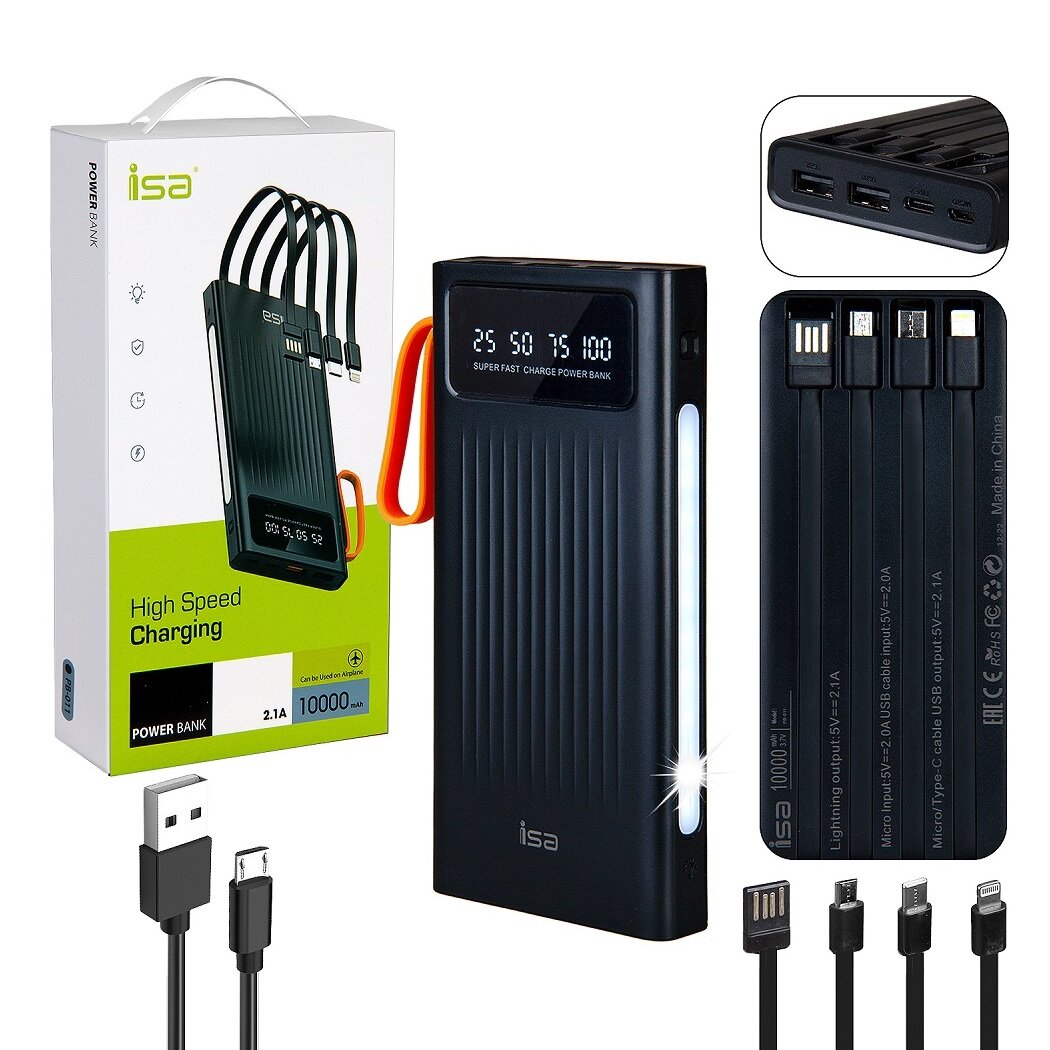 Купить Внешний аккумулятор ISA PB-011 10000mAh, 2.1A, дисплей, фонарик, 4 встроенных кабеля, черный с доставкой по всей России. Внешний аккумулятор ISA PB-011 10000mAh, 2.1A, дисплей, фонарик, 4 встроенных кабеля, черный: сравнение цен, характеристики, фото, актуальное наличие и цены.