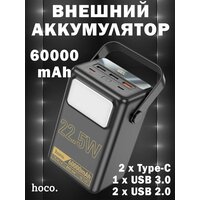внешний аккумулятор 60000мАч QC3.0/PD с фонарем Hoco J110 Powerful 22.5W - Черный;